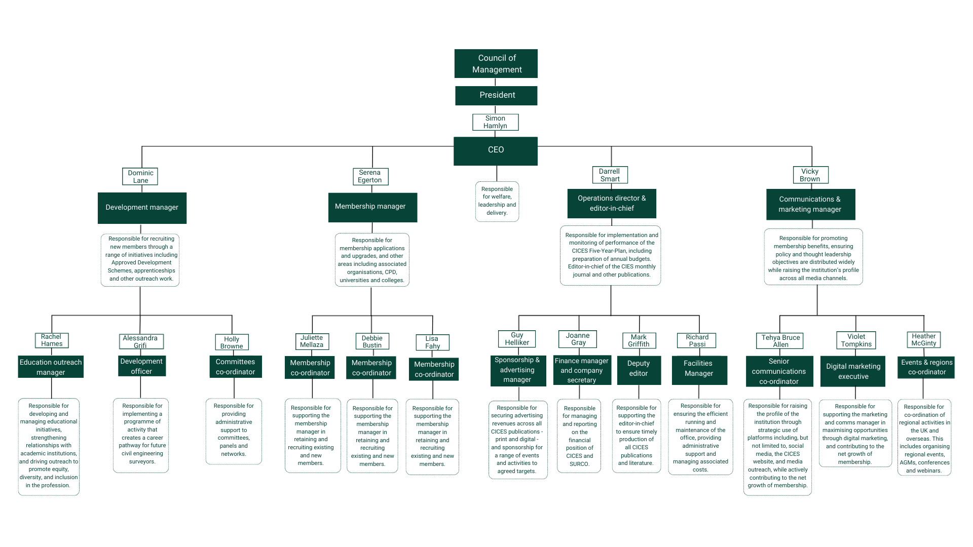 With expertise across various disciplines, CICES staff play a vital role in implementing strategic goals, upholding professional standards and delivering value to members across the globe.